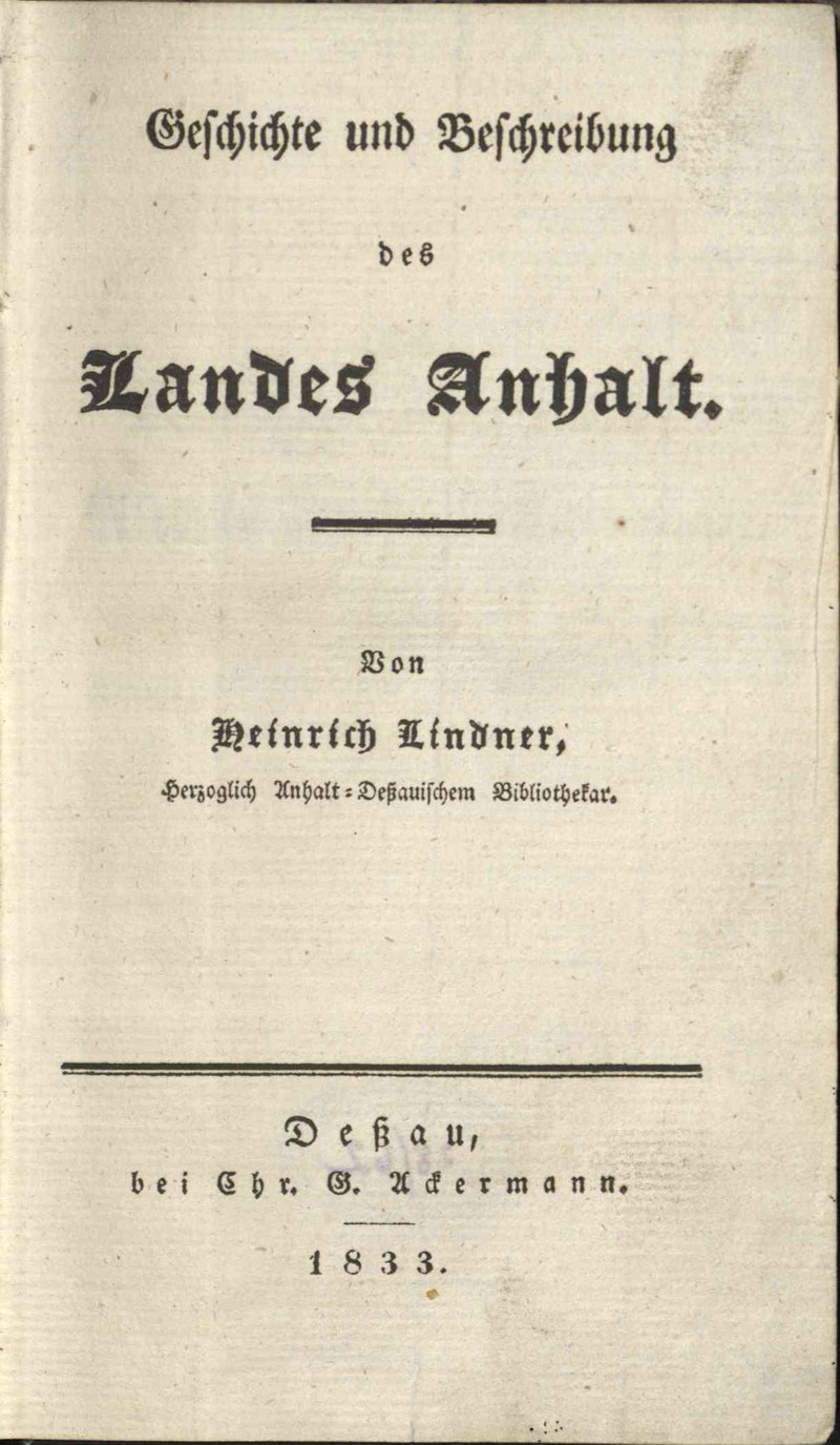 Anlässlich des 225. Geburtstages des bedeutenden anhaltischen Historikers, Philologen und Bibliothekars Heinrich Lindners präsentiert der Standort Dessau des Landesarchivs Dokumente zur Entstehung seiner 1833 erschienenen Titel „Geschichte und Beschreibung des Landes Anhalt“.