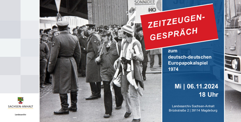 Ein Teil der dabei entstandenen Dokumente und Fotos überliefert sich bis heute im Landesarchiv Sachsen-Anhalt, konkret als Teil des Bestands M 24 „Bezirksbehörde der Deutschen Volkspolizei (BDVP) Magdeburg“. Erstmals stehen sie nun im Mittelpunkt einer Ausstellung, die anhand bislang unveröffentlichter Archivalien eine besondere Perspektive auf die deutsch-deutsche Teilungsgeschichte richtet: Während die Politik die Deutschen in zwei politisch entgegengesetzte Lager zwang, blieb das runde Leder stets ein unberechenbarer Spielball zwischen Ost und West.