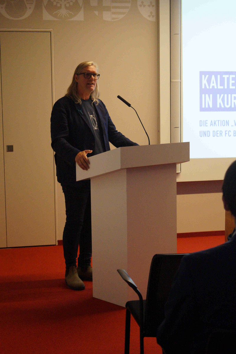Nach einer Begrüßung durch Dr. Detlev Heiden, Leiter des Landesarchivs Sachsen-Anhalt, sprachen der Staatssekretär im Ministerium für Inneres und Sport des Landes Sachsen-Anhalt, Klaus Zimmermann, die Leiterin des Arbeitsbereichs Public History der Bundesstiftung zur Aufarbeitung der SED-Diktatur, Dr. Sabine Kuder sowie der Geschäftsführer der DFB-Kulturstiftung, Olliver Tietz, Grußworte. Anschließend führte Dr. René Wiese vom Zentrum deutsche Sportgeschichte Berlin-Brandenburg e. V. ausführlich in die Ausstellung ein, indem er die Aktion Vorstoß II in den größeren Kontext der Überwachung von Fußballspielen von DDR-Mannschaften einordnete.