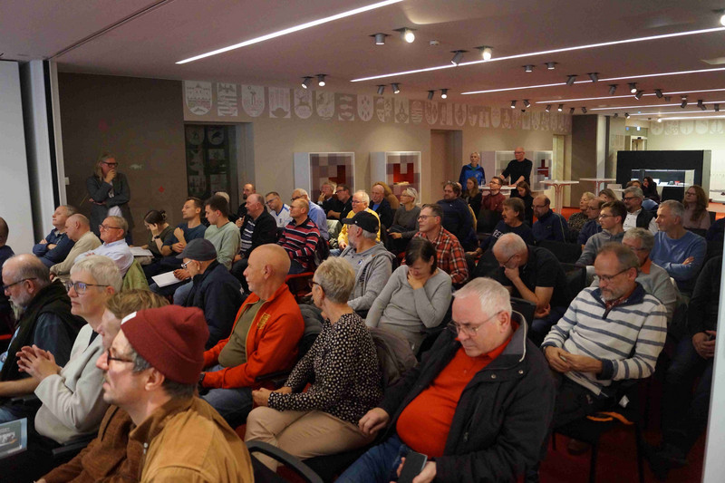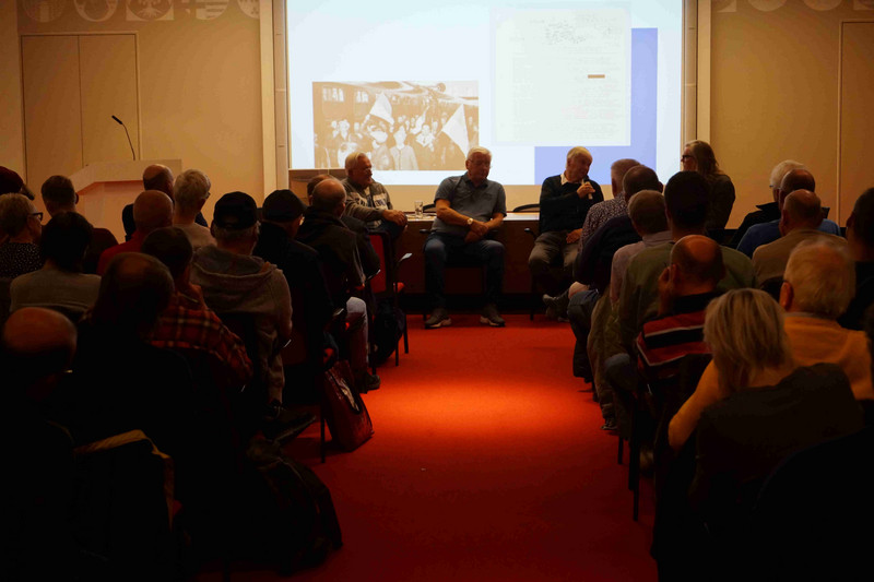 Im Doppelpass spielte René Wiese zwischen den Ergebnissen seiner Archivforschungen und den Erinnerungen der Zeitzeugen. Ausgehend von einer mit zahlreichen Fotos versehenen Präsentation verstand er es, das legendäre Fußballspiel in einen größeren Kontext einzubetten und aus verschiedenen Perspektiven zu vertiefen.